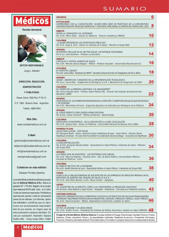 La revista líder de salud en Argentina. MÉDICOS es la revista con la mayor información sobre el sector salud.