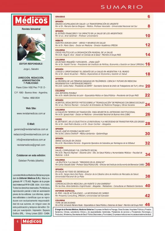 La revista líder de salud en Argentina. MÉDICOS es la revista con la mayor información sobre el sector salud.