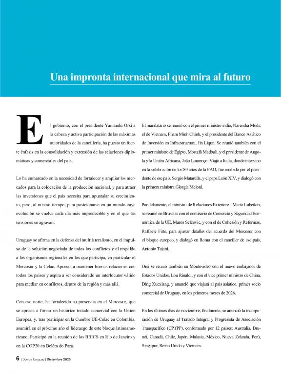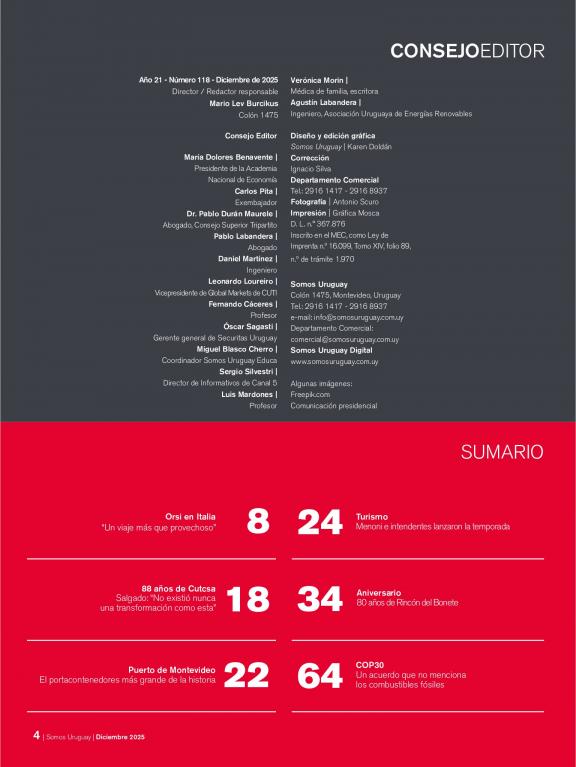 Somos Uruguay está destinada a promover e impulsar el trabajo público y privado, de los organismos y empresas, nacionales e internacionales, que actúan en Uruguay. Es un medio dedicado a la elaboración y difusión de contenido noticioso y editorial.